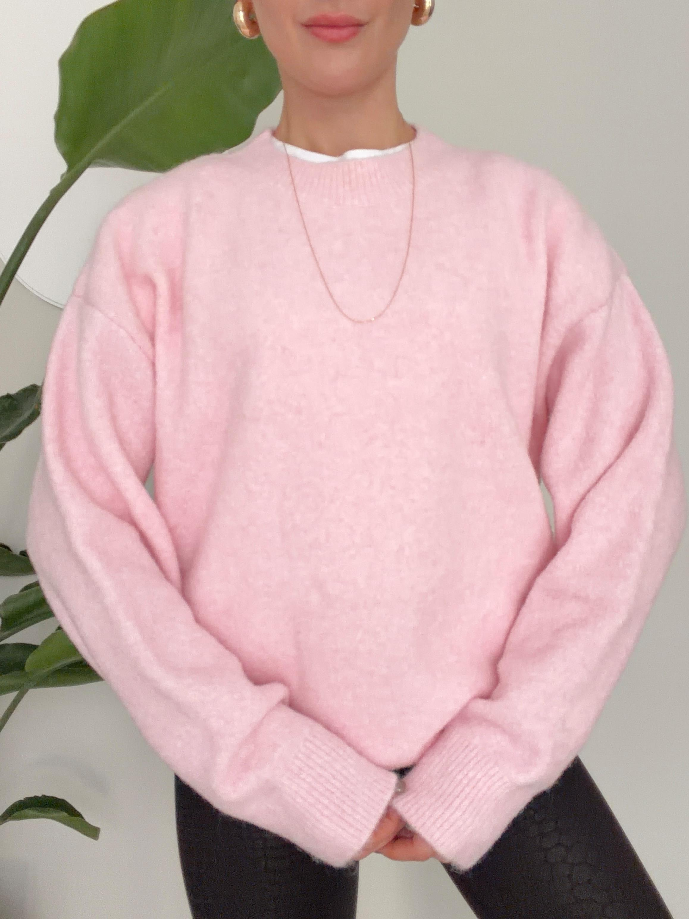 Bisiklet Yaka Yumuşak Dokulu Triko Kazak Açık Pembe