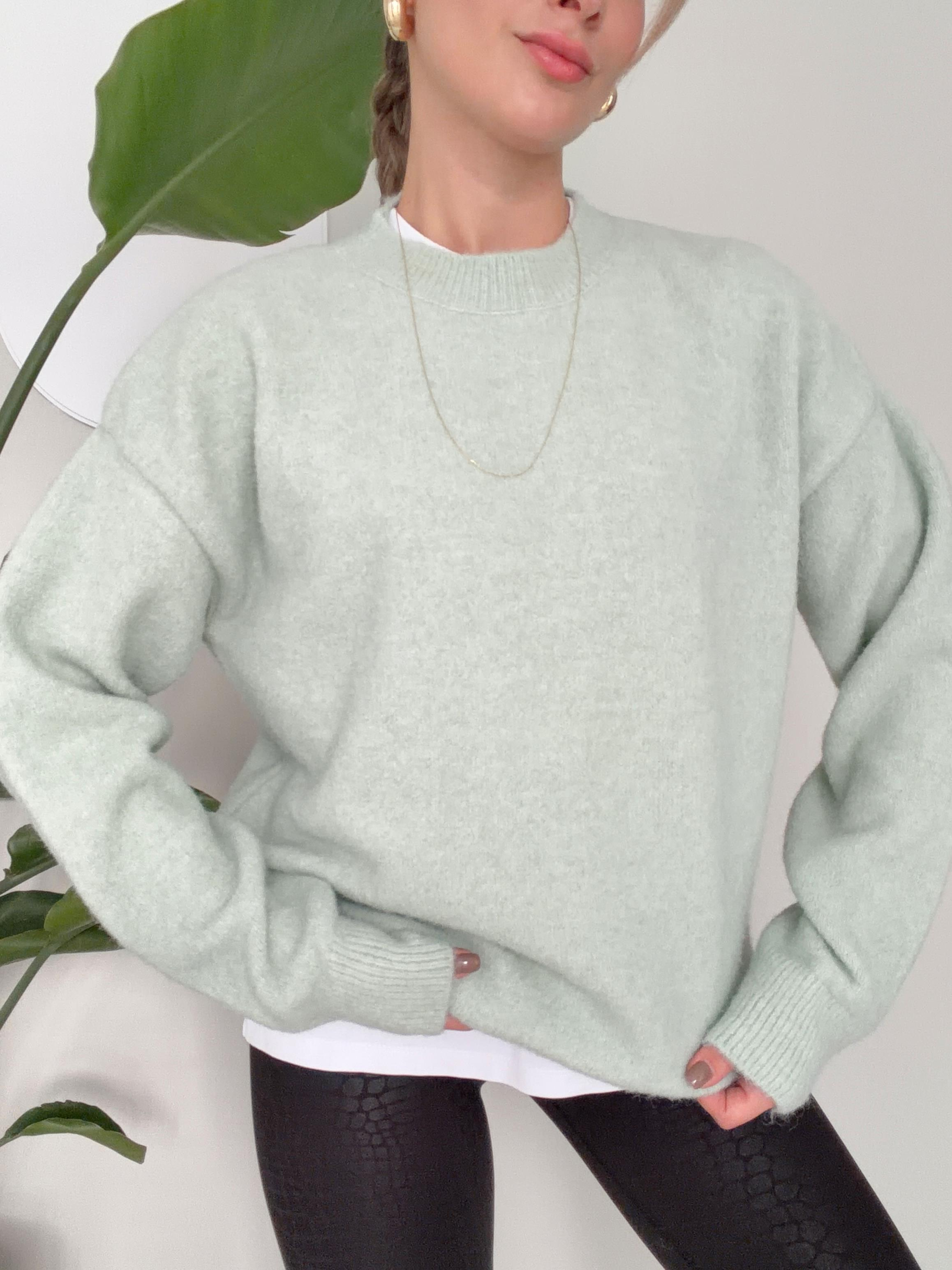 Bisiklet Yaka Yumuşak Dokulu Triko Kazak Koyu Mint