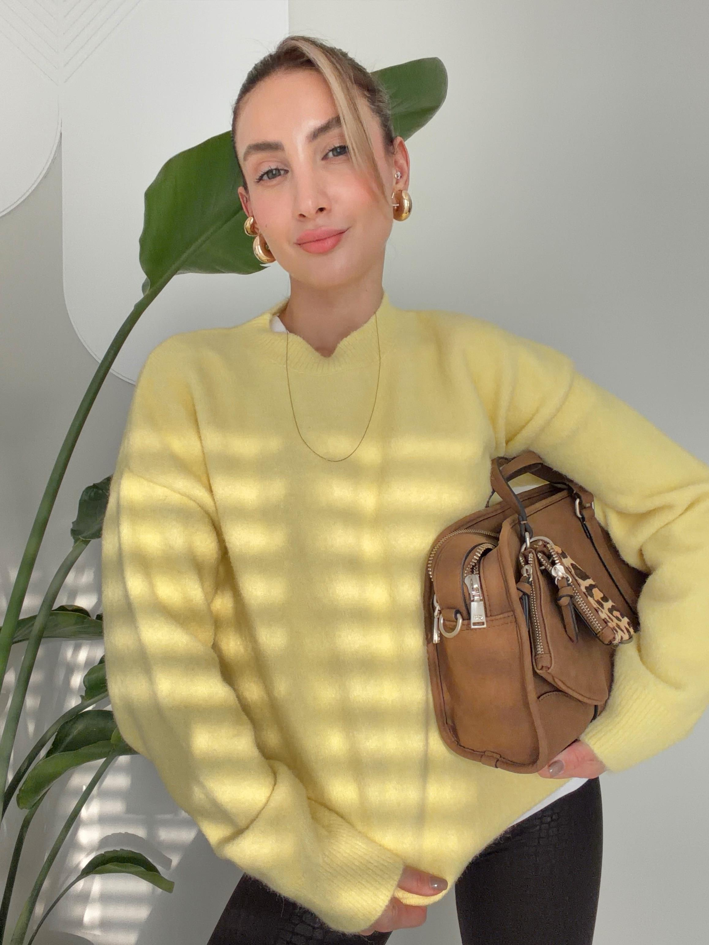Bisiklet Yaka Yumuşak Dokulu Triko Kazak Koyu Sarı