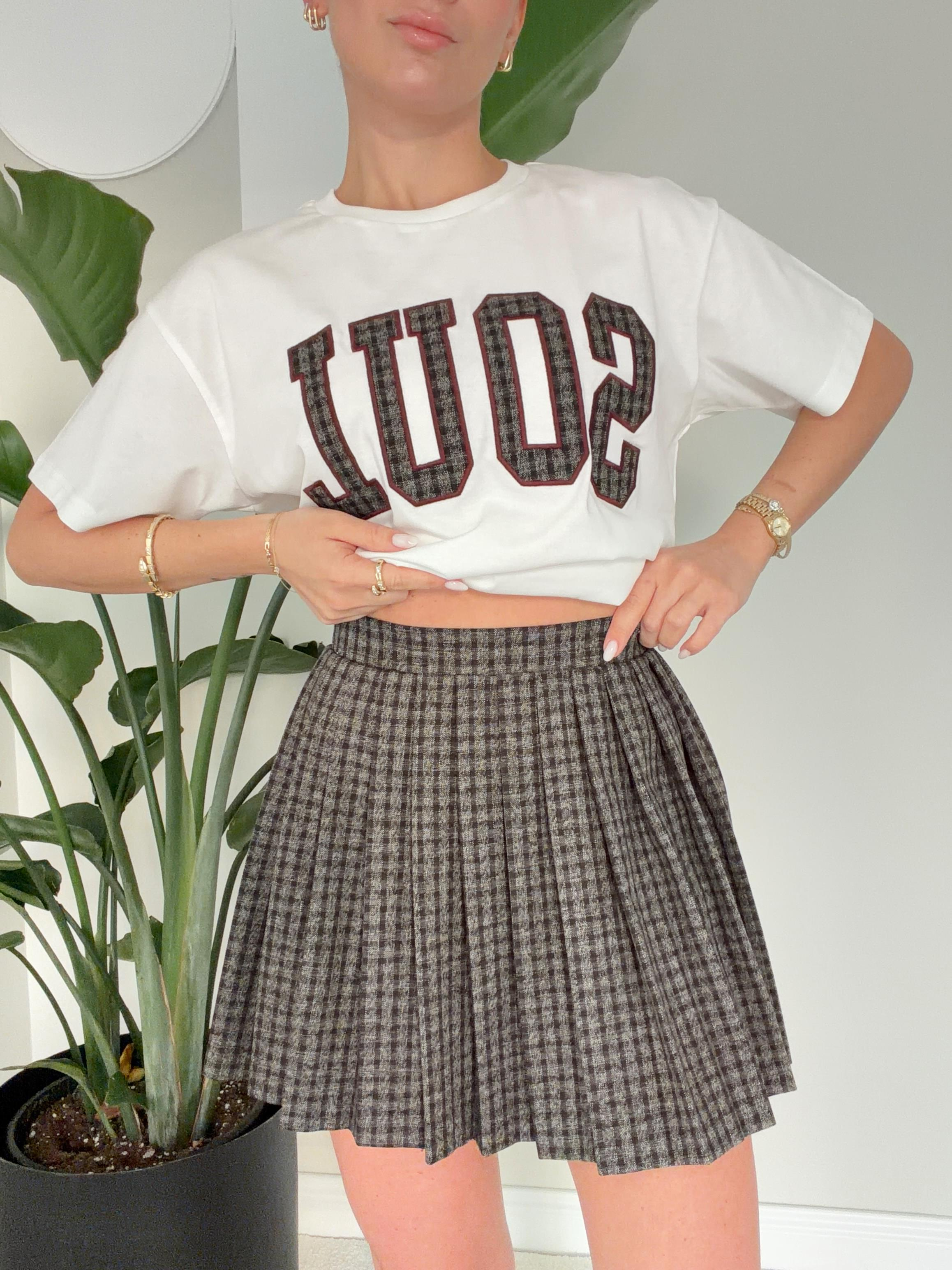 Desenli Kumaş Pileli Şort Etek Kahverengi