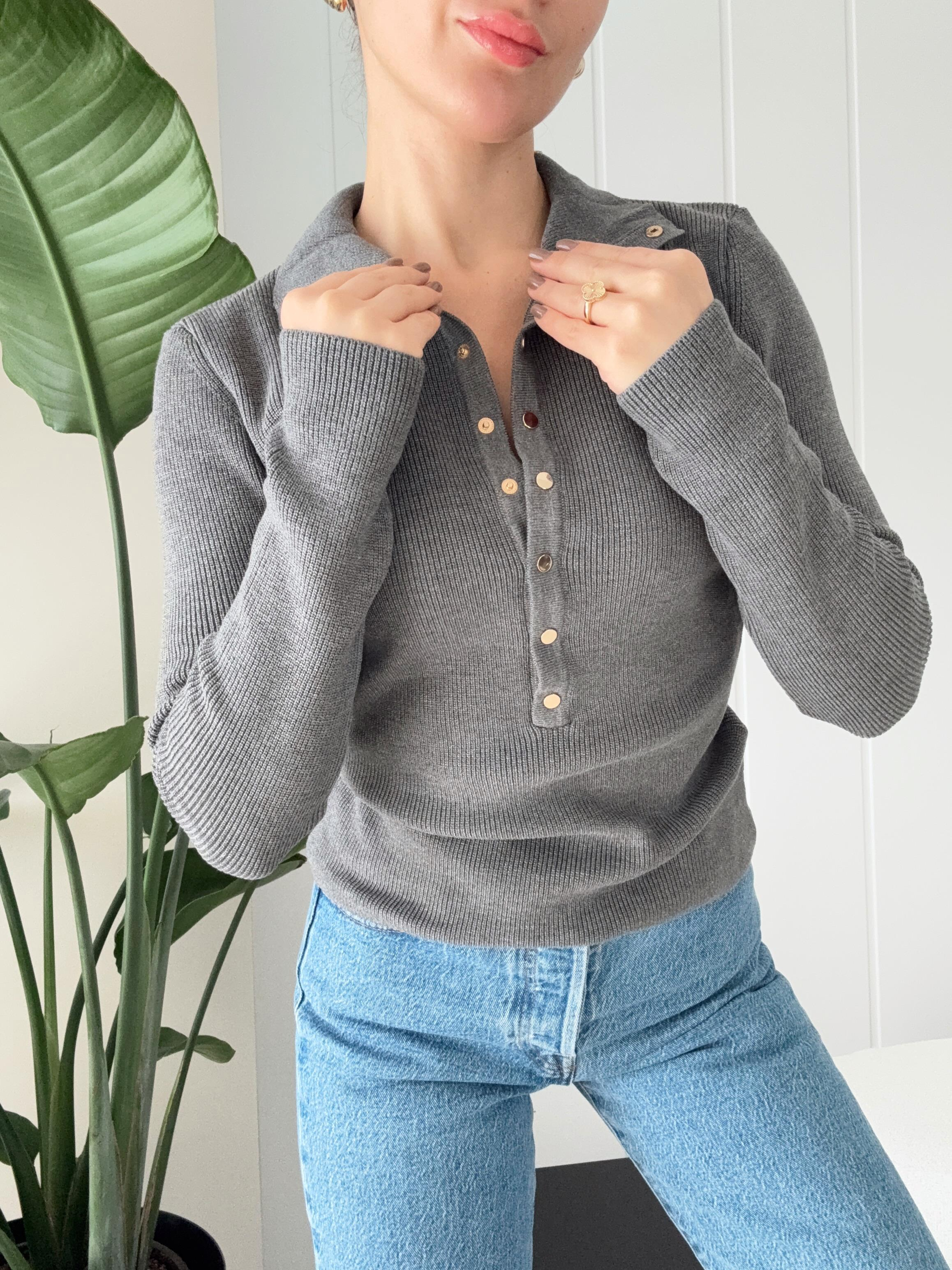 Dik Yaka Çıtçıtlı Triko Kazak Füme Melanj