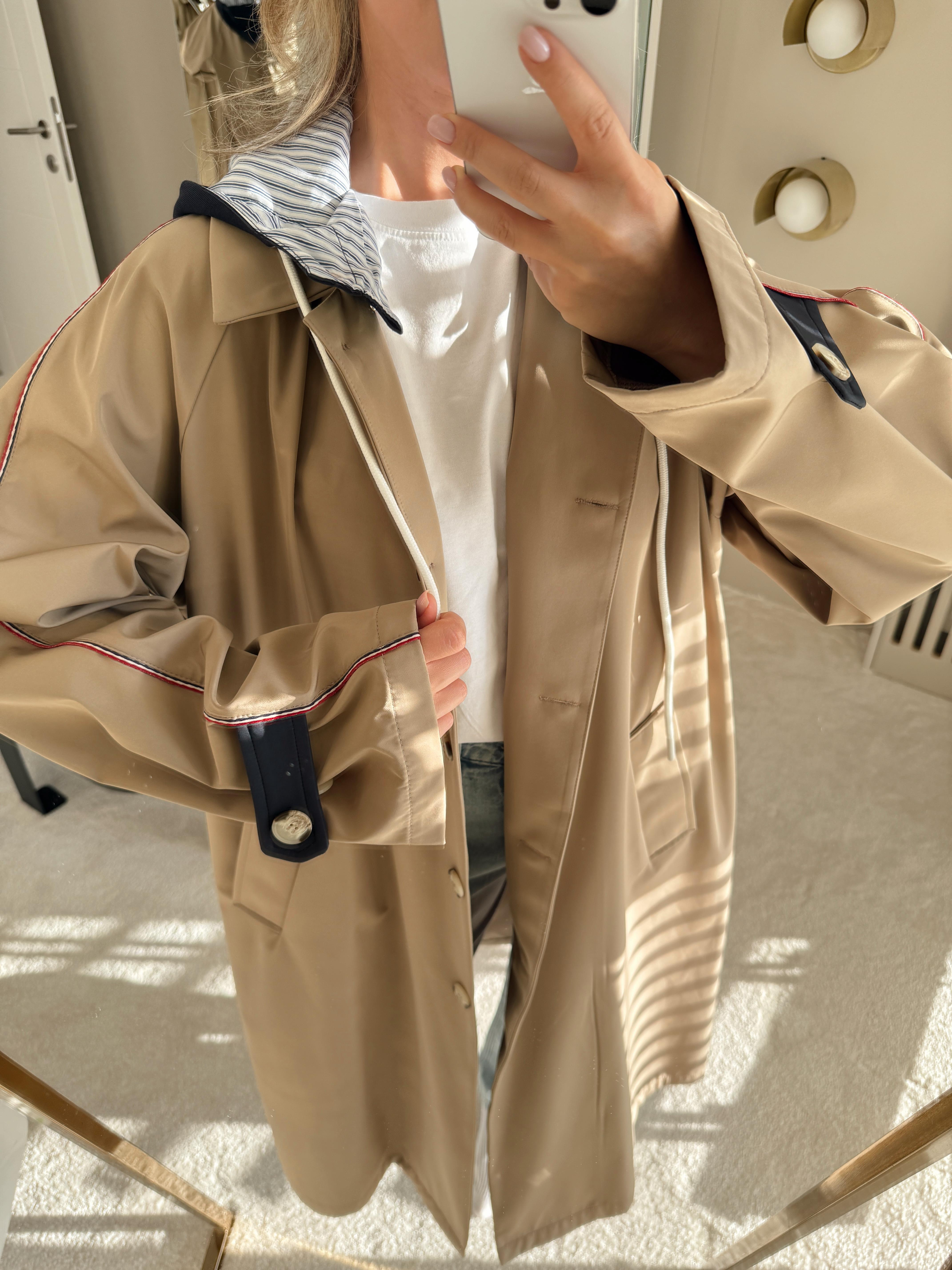 Kapuson Detayı Çıkarılabilir Trenckot Kahverengi