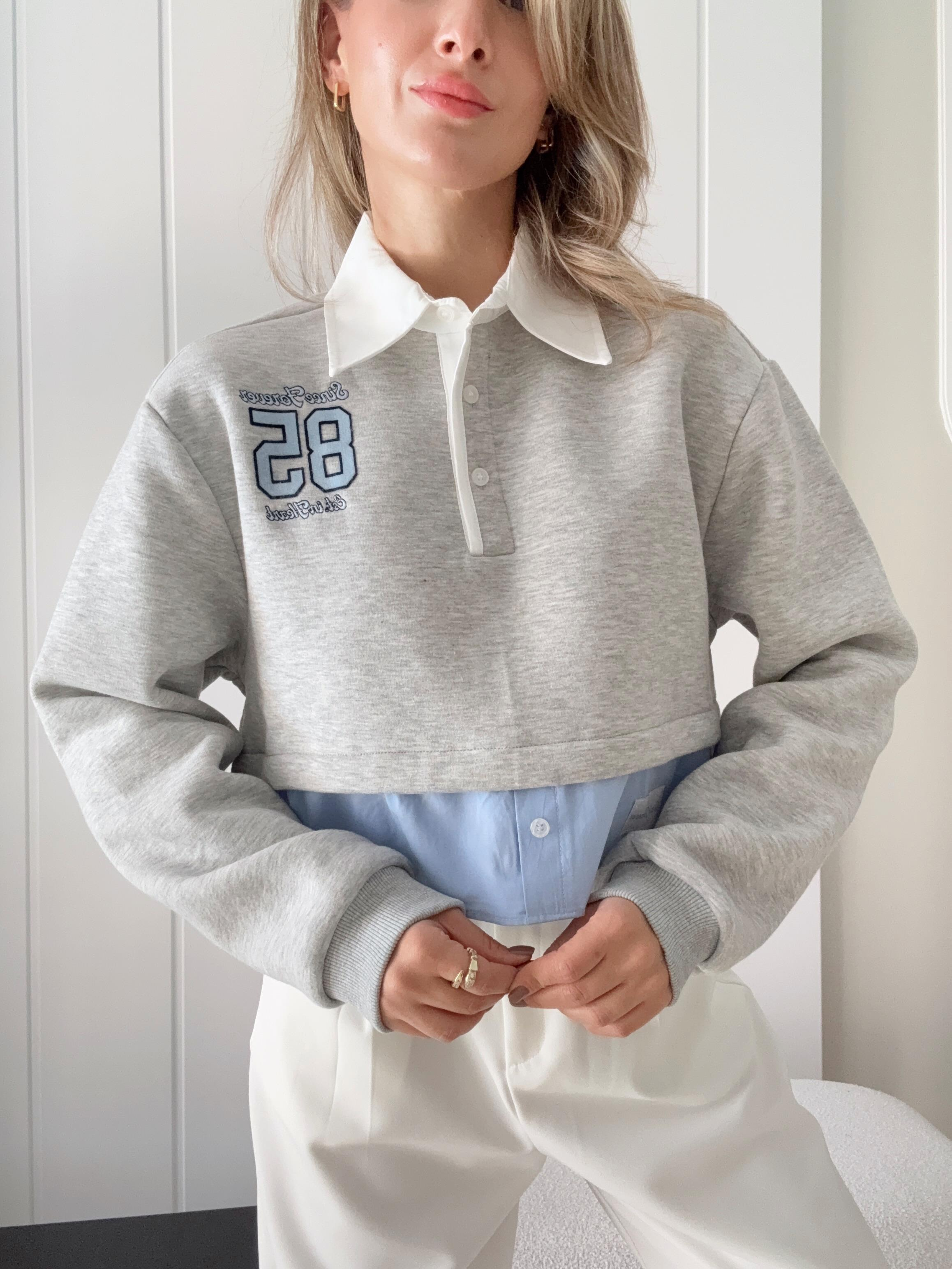 Polo Yaka Gömlek Detay Sweatshirt Gri