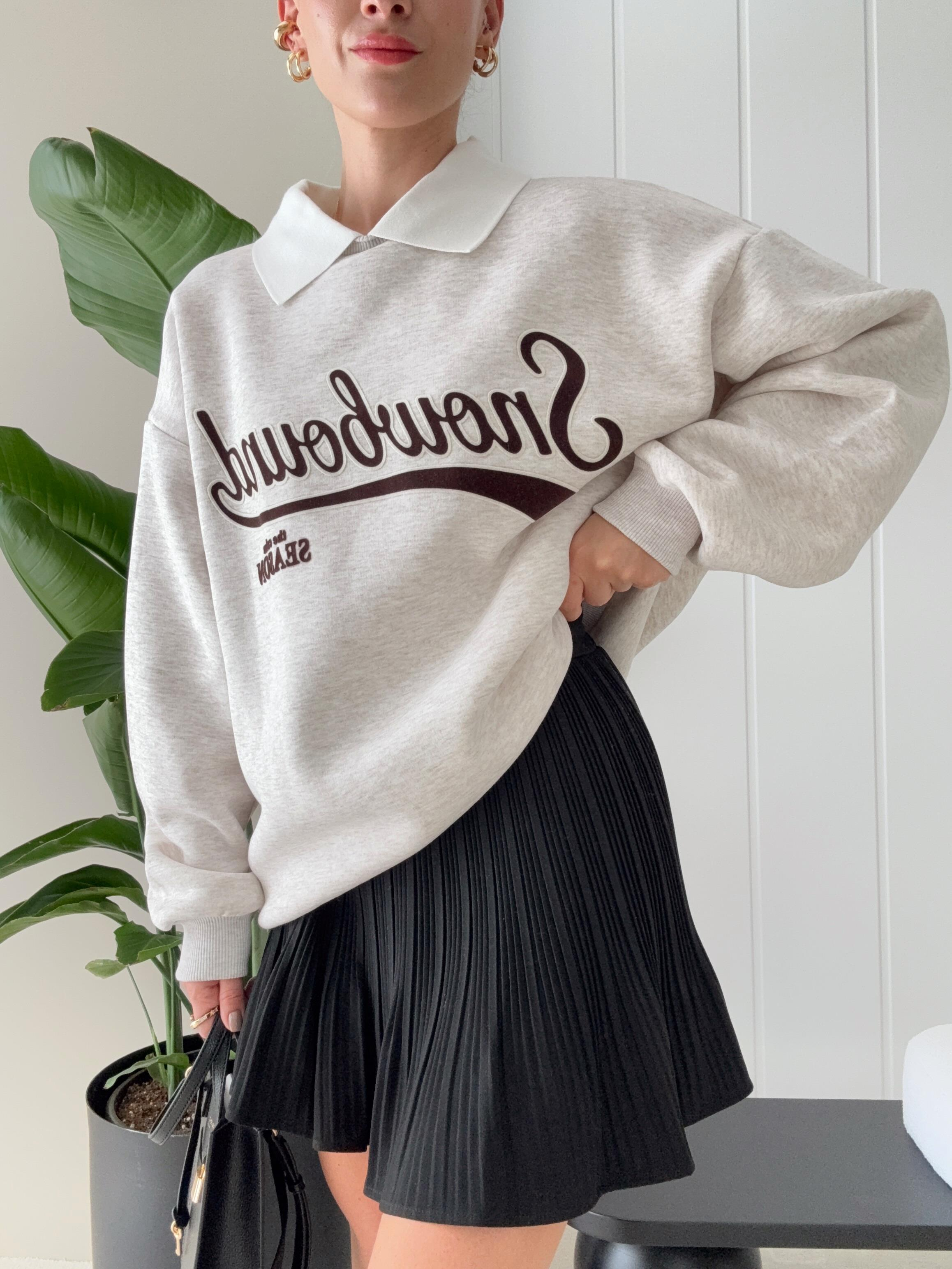 Polo Yaka Sweat Baskı Detaylı Ekru