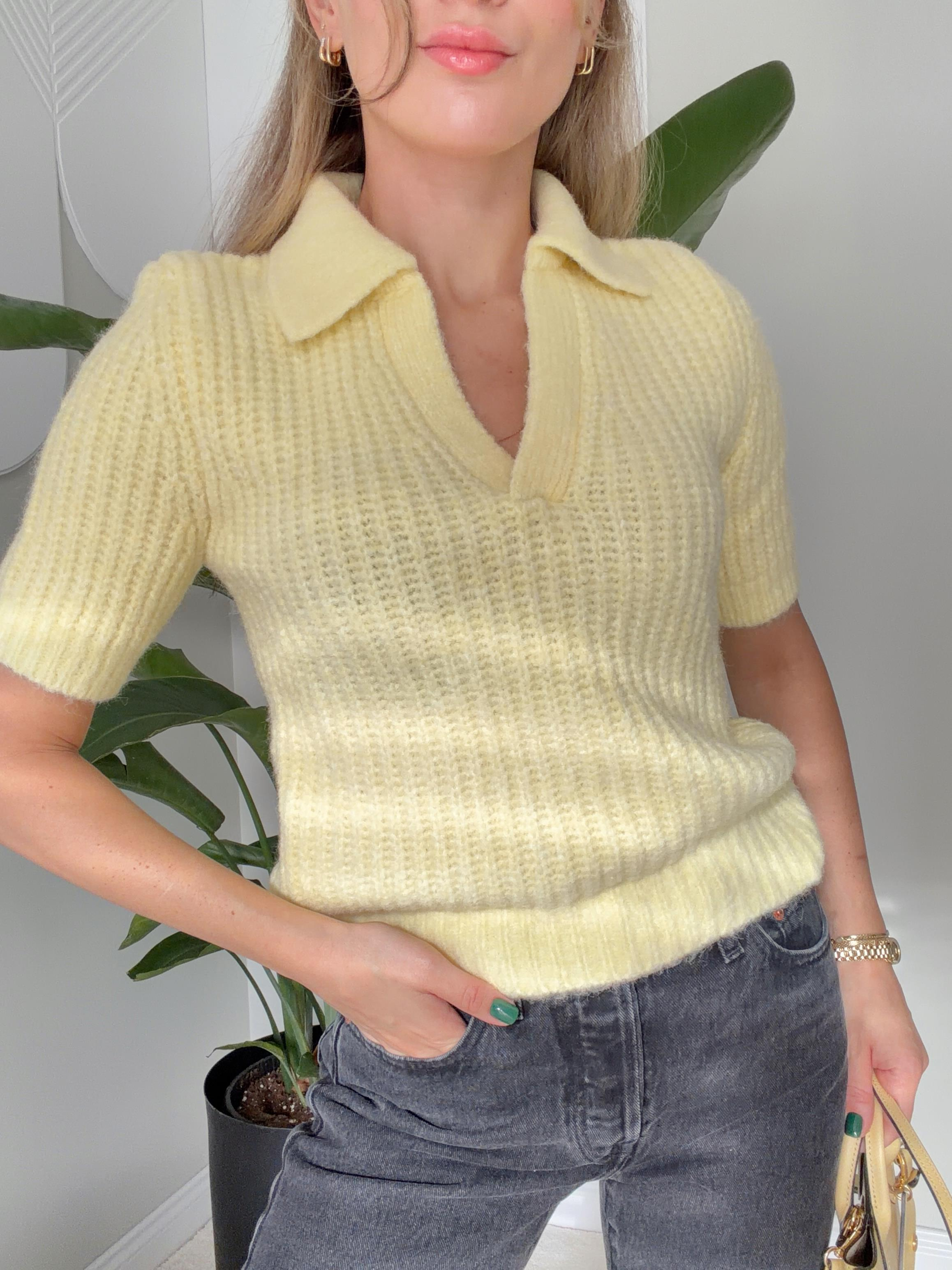 Polo Yaka Yumuşak Dokulu Triko Kazak Sarı