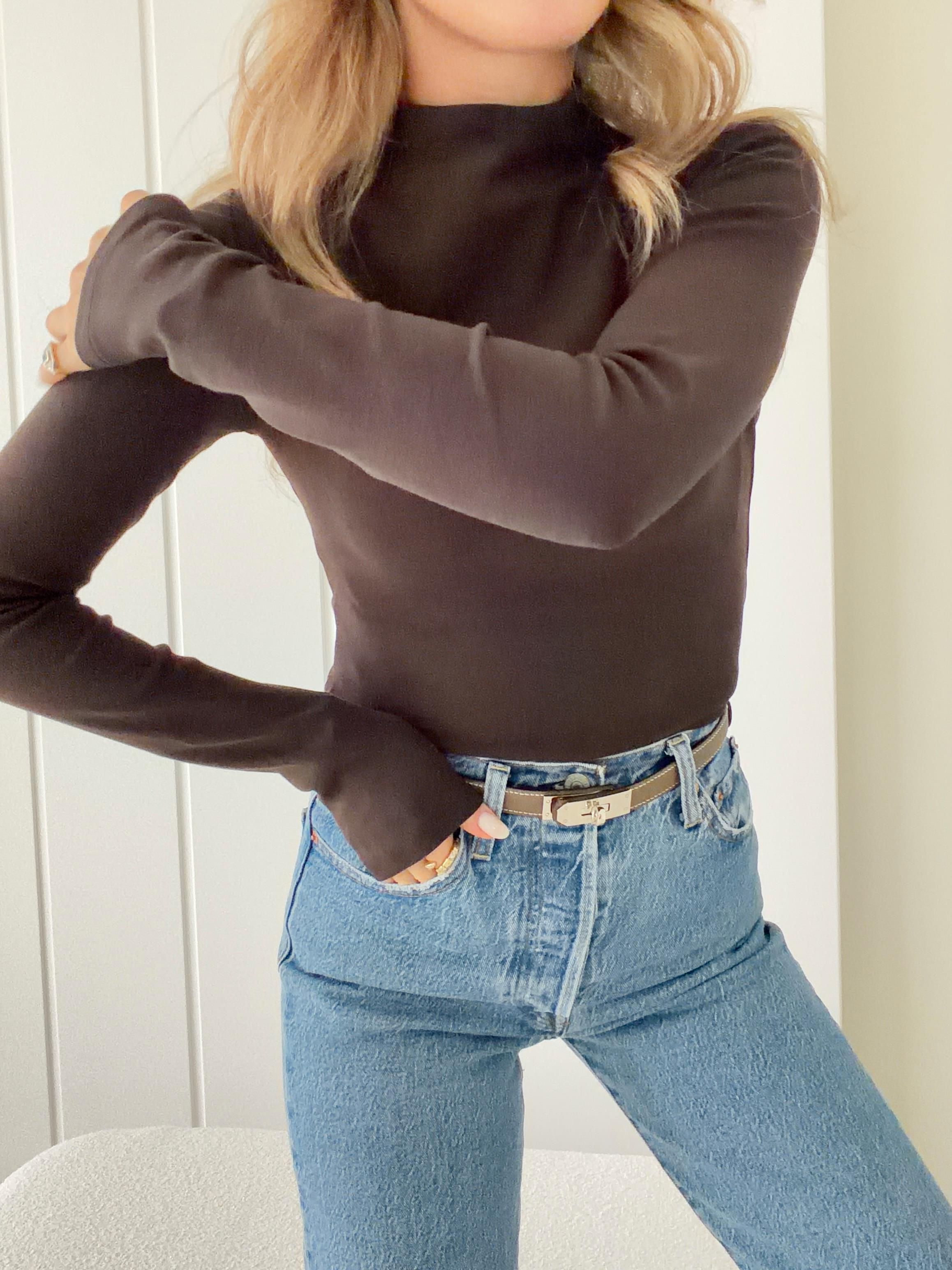 Yarım Balıkçı Yaka Top Body Koyu Kahverengi